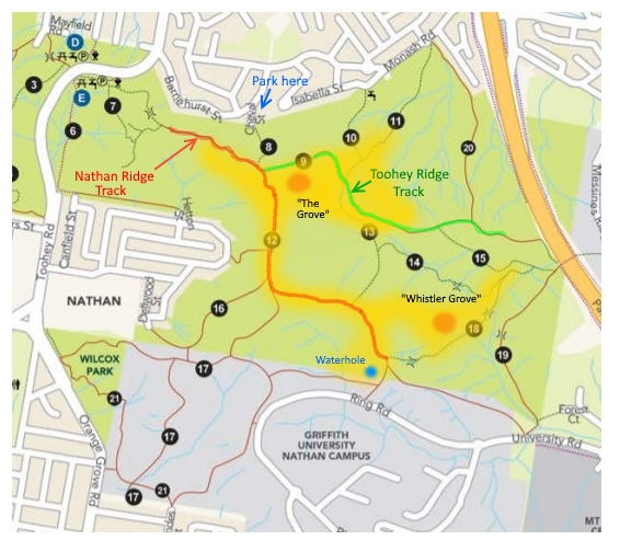 - Toohey Forest Conservation Park (main hotspot most people use)