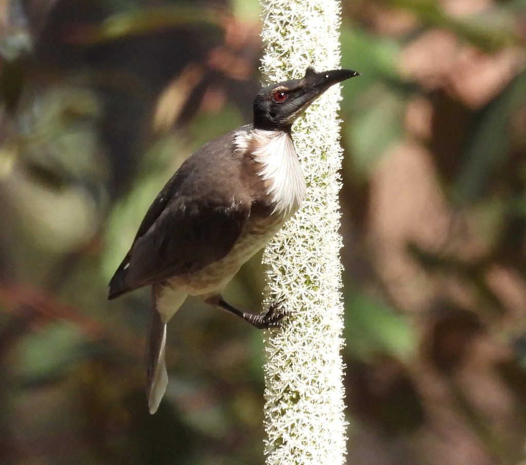 Because this was winter, the Grass Trees were flowering and this brought about many honeyeaters – Scarlet, Brown, Yellow-Faced, Blue-Faced and White-Throated, as well as Eastern Spinebills. Spangled Drongos, Olive-Backed Orioles and Noisy Friarbirds also got in on the easy-nectar action. It made for great photography as the birds are lower down, easy to see and shoot on the exposed spikes.