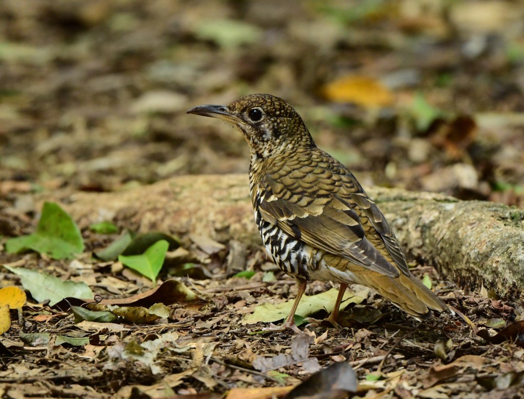 The dim light in the rainforest is a real challenge. At times my camera auto shutter speed was falling below 1/20th of a second, which really trains you to hold it incredibly steadily. Logrunners are a case in point: they’re usually on the forest floor in low light, and often digging busily, so you also get the bird’s motion blur. I was lucky to have a salvageable photo of one.