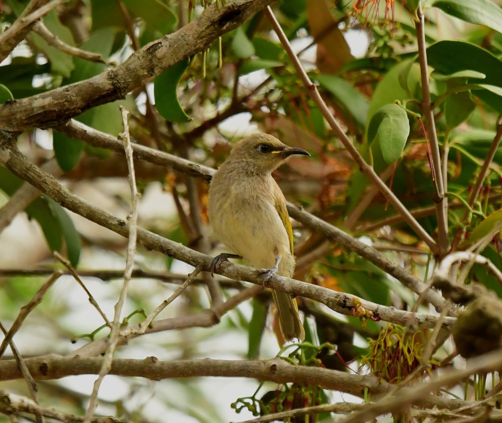 Along this dirt path there was a flock of Red-Browed Finches, as well as Silvereyes and Yellow-Faced Honeyeaters and even a (brief, highly obscured) look at a Rufous Fantail. As I got closer to the creek (the orange area on the map), the bush turned into that dense and varied mix that makes you think “this sure seems like it could be a pretty great spot for birds”, and sure enough lingering around here saw Noisy Friarbird, Lewin’s and Blue-Faced Honeyeater, White-Browed Scrubwren, and an Olive-Backed Oriole. I’m sure I missed a few too, but I was having a pretty good time, as the morning sun was streaming in and there were a few birds around. It just generally seemed like a pleasant spot.