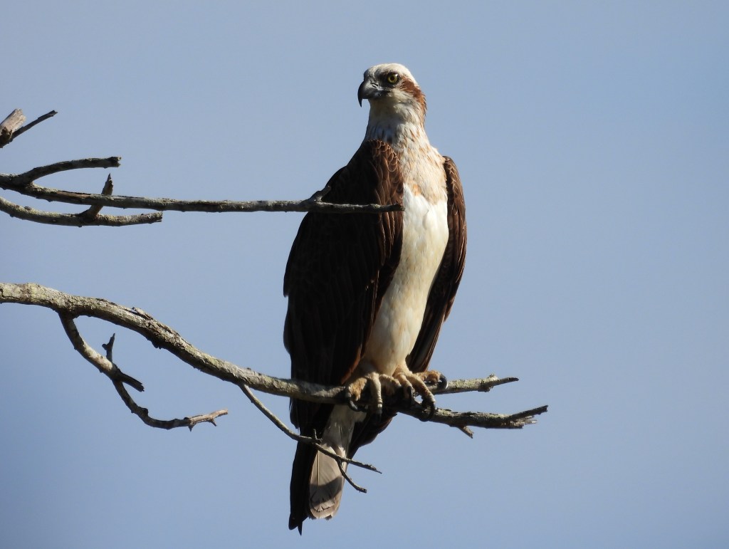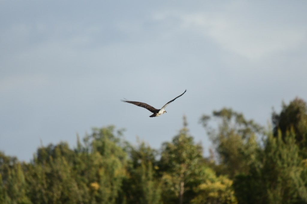 At this point I should mention that I was birding with two cameras around my neck. If that sounds awkward… well, yes it was. One was my trusty Nikon D500 with 300mm prime lens; however I had recently also purchased a “bridge” camera, the Nikon P950, thinking to use its ridiculous 83x zoom (yes, you read that correctly) for the further-away birds. The P950 definitely had the edge for reach and clarity on this Osprey, which was maybe 30 or 40 metres away.