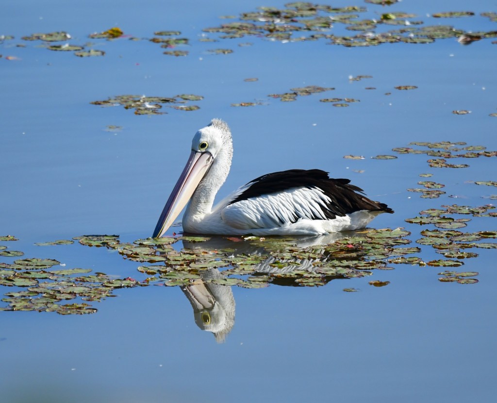 I made my way further west (clockwise) around the outer circuit walk, discovering a rather unofficial but intriguing narrow dirt trail to the right. I followed this for much longer than I expected and found Variegated Fairywrens and a Chestnut-Breasted Mannikin in the long dry grasses. At this point I could also see the majority of the Pelicans had taken to the sky and were soaring randomly above. Probably they were enjoying the thermals.