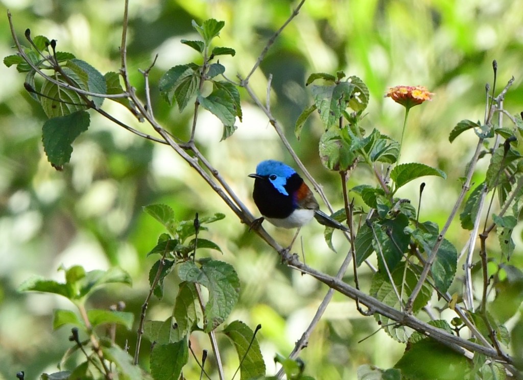 I then saw a what sort-of-seemed-like-a-track to the left, but there was no signage, so I left it and plunged onwards – getting less certain of where I was by the minute. Turns out I was walking down the “Eastern Break” and then the “Sandstone Break”, both sandy dirt roads, but which unexpectedly provided the best birding of the day, as I first saw some playful Striated Pardalotes, then a couple of White-Throated Honeyeaters, and then a female Leaden Flycatcher sitting nonchalantly on a log on the side of the track! Alas, I was too slow to grab a shot of it there, but managed to get more soon after, and even better shots of the male. I do love Flycatchers and Monarchs; these ones were friendly enough and I enjoyed seeing their tails flicking when they landed on a branch.