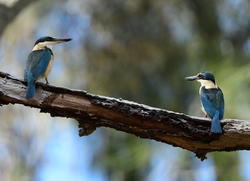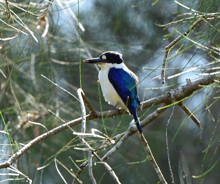 After getting back into the saddle and heading back along the bikeway the way I had come earlier, I saw a Magpie-Lark quite close, and then had a nice encounter with some Superb Fairywrens. I was stopping every 40 or 50 metres due to birds, which was getting really tricky, finding somewhere to ease the bike off track and stand astride it while trying to nab a photo before a bird disappeared into the brush (and putting up with ever-increasing numbers of cyclists, walkers and runners coming past). I did however spy a Rufous Fantail on its hanging nest, and then a pair of Sacred Kingfishers and a female Scarlet Honeyeater.