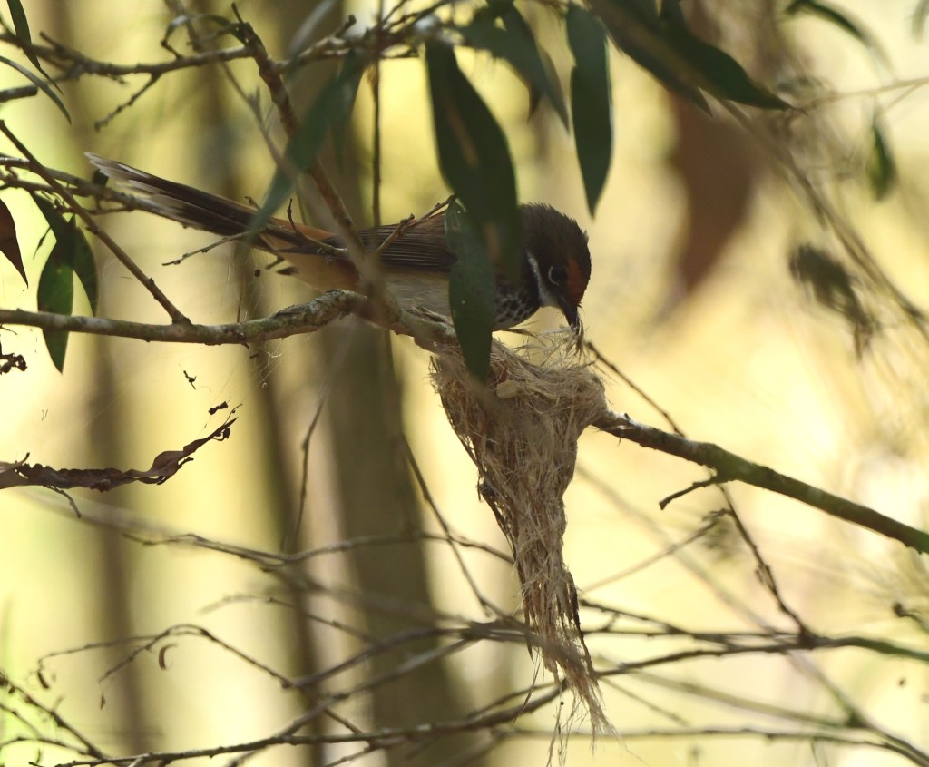 I eventually arrived at the Environment Centre, parked the bike, and set out on the Billai dhagun circuit (anti-clockwise). This was sedate for a while – with only Noisy Miners around – until deeper into the circuit where I found Striated Pardalote, a Spangled Drongo, and a Black-Faced Cuckooshrike. This area was rather nice, quieter and more peaceful with the morning sun streaming in.