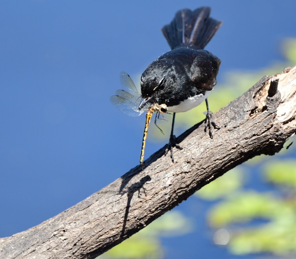 But it was an encounter with a Willie Wagtail that stole the show – it had caught a dragonfly and landed with it on an exposed branch sticking out of the water right in front of the bird hide. Magic!