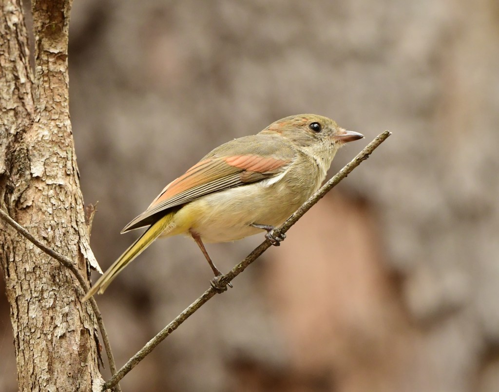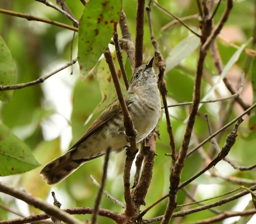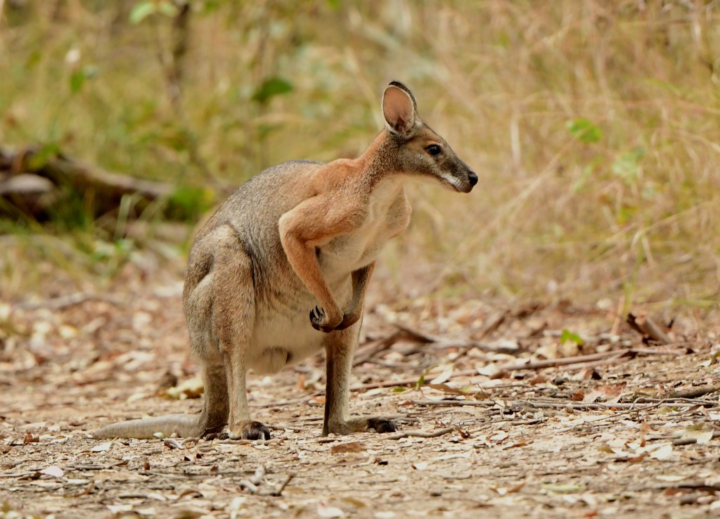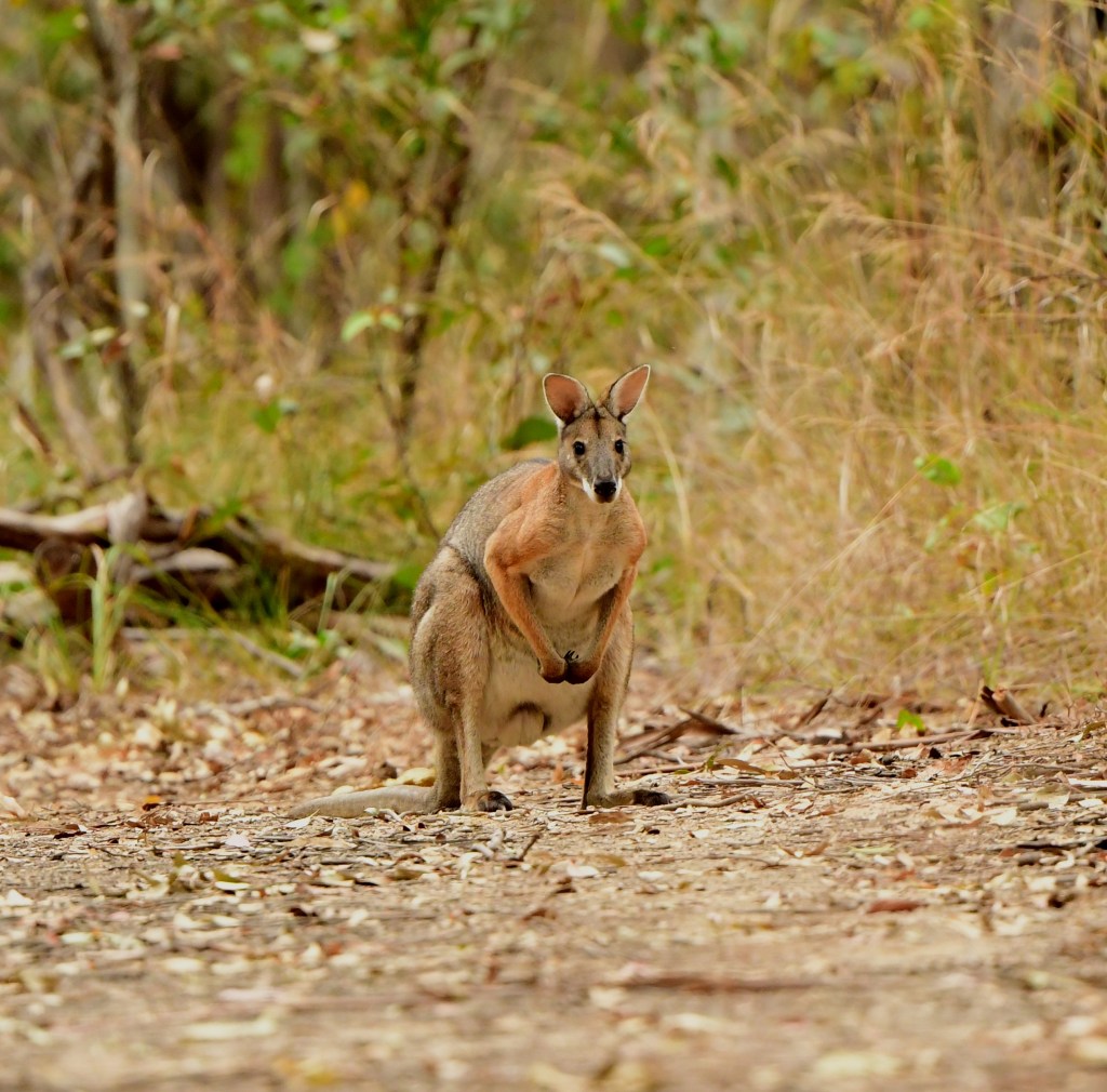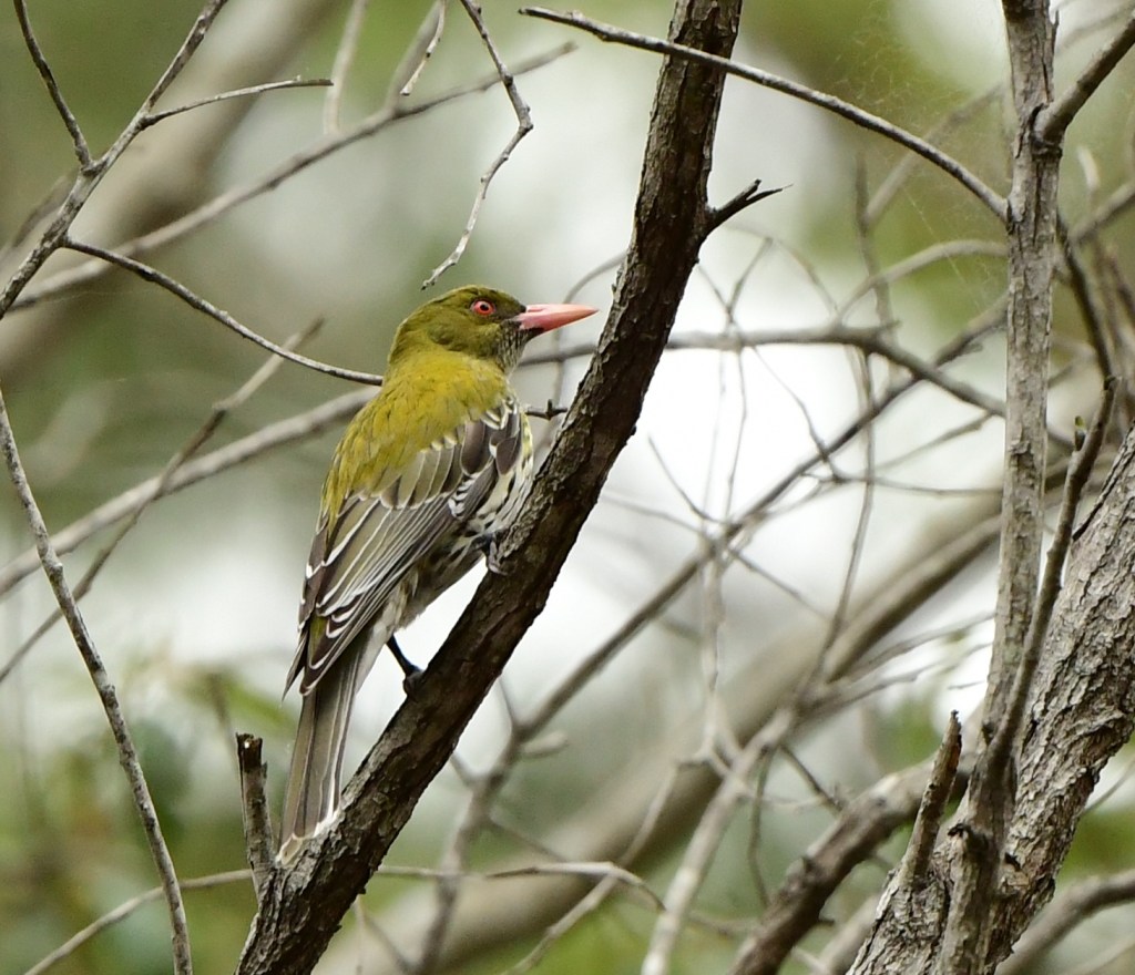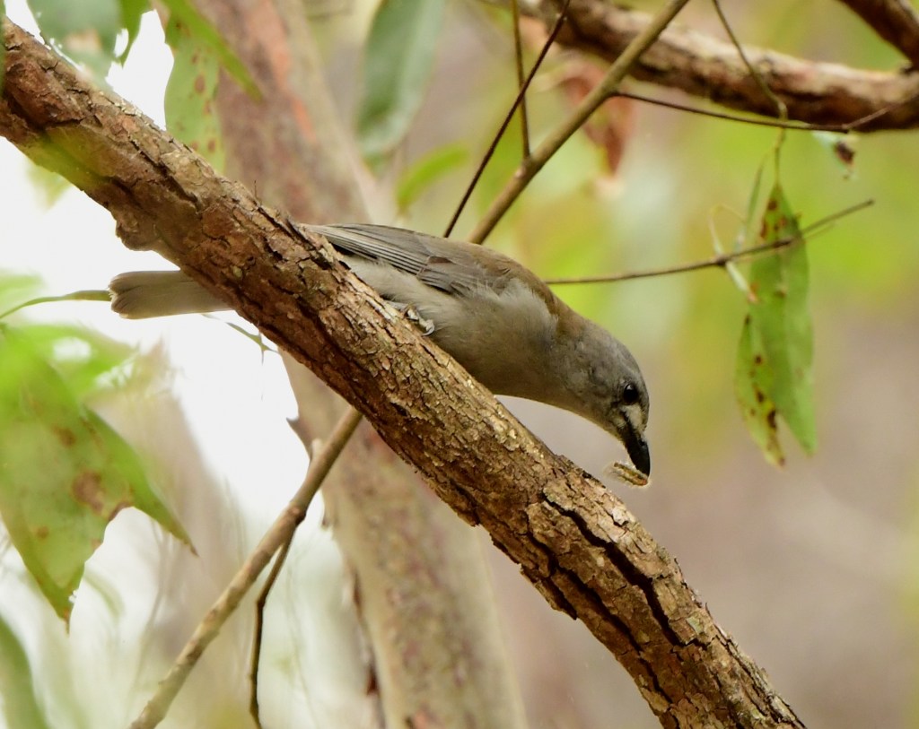 Because it was early spring, the forest was still quite dry from winter; visiting in late summer might have yielded a different experience. I trudged for quite a while without seeing much at all, and the overcast conditions – terrible for photography – were also dampening my spirits; I only saw a Sacred Kingfisher, Olive-Backed Oriole and a Spangled Drongo for over an hour. Eventually I did see what I thought was Fuscous Honeyeater in the very top of the canopy, but only forensic examination of the photos later and a little wishful thinking convinced me I had actually seen them. Another 30 minutes of slow birding went by with only a Grey Shrikethrush and a wallaby to show for it, and by then I had nearly completed a circuit back up to the top of the IronBark Ridge trail.