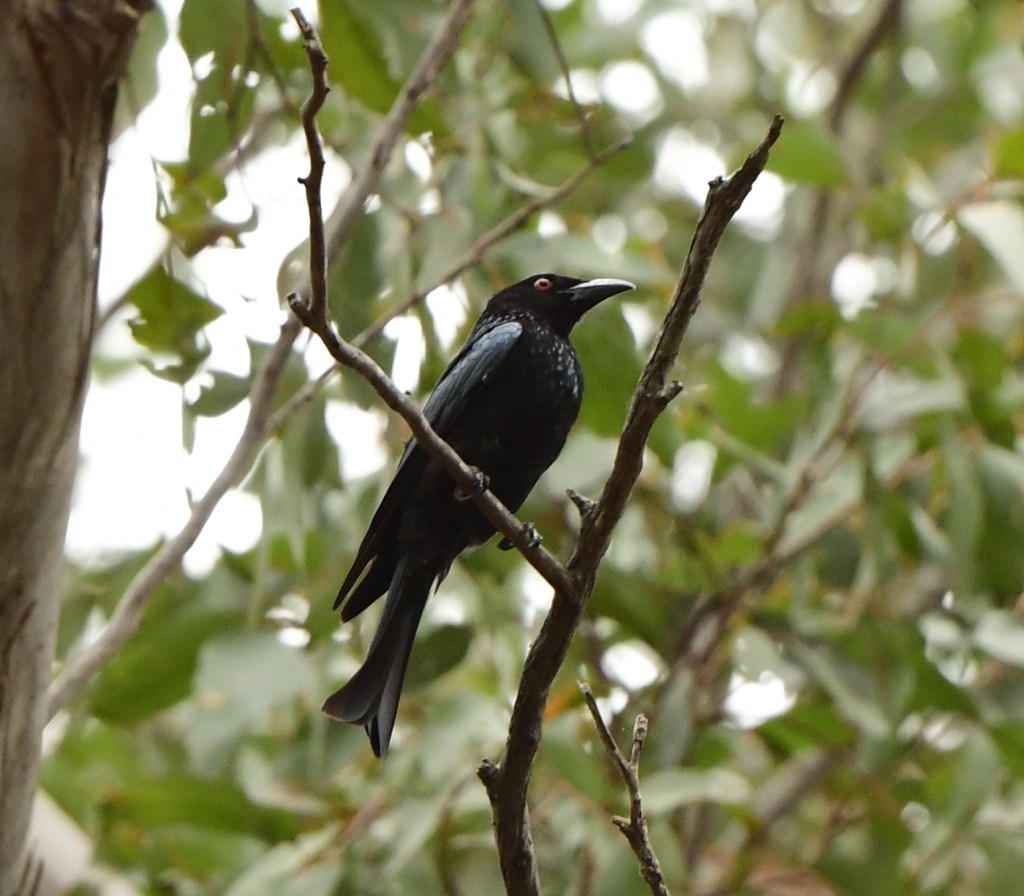 Sometimes when you’re birding, the forest just seems to explode with life and you barely know where to look or point your camera because there’s so much happening. Like an encounter with a rare bird or an intimate close-up with a more common bird, these moments can flip a disappointing venture into a memorable one. Such was the case for me today: suddenly the section I was in – the Grey Gum loop just to the east of the intersection with Ironbark Ridge – had birds aplenty: a Shining Bronze-Cuckoo, a couple of Lewin’s Honeyeaters, a female Golden Whistler, and then, incredibly, a Black-Faced Monarch appeared! It fluttered around for quite a while, even dropping onto a branch that arched across the top of the path. For what I had thought was a very uncommon bird, it sure was friendly enough. And even better, most of this action was happening in the mid-canopy, so I was able to get decent-ish images.