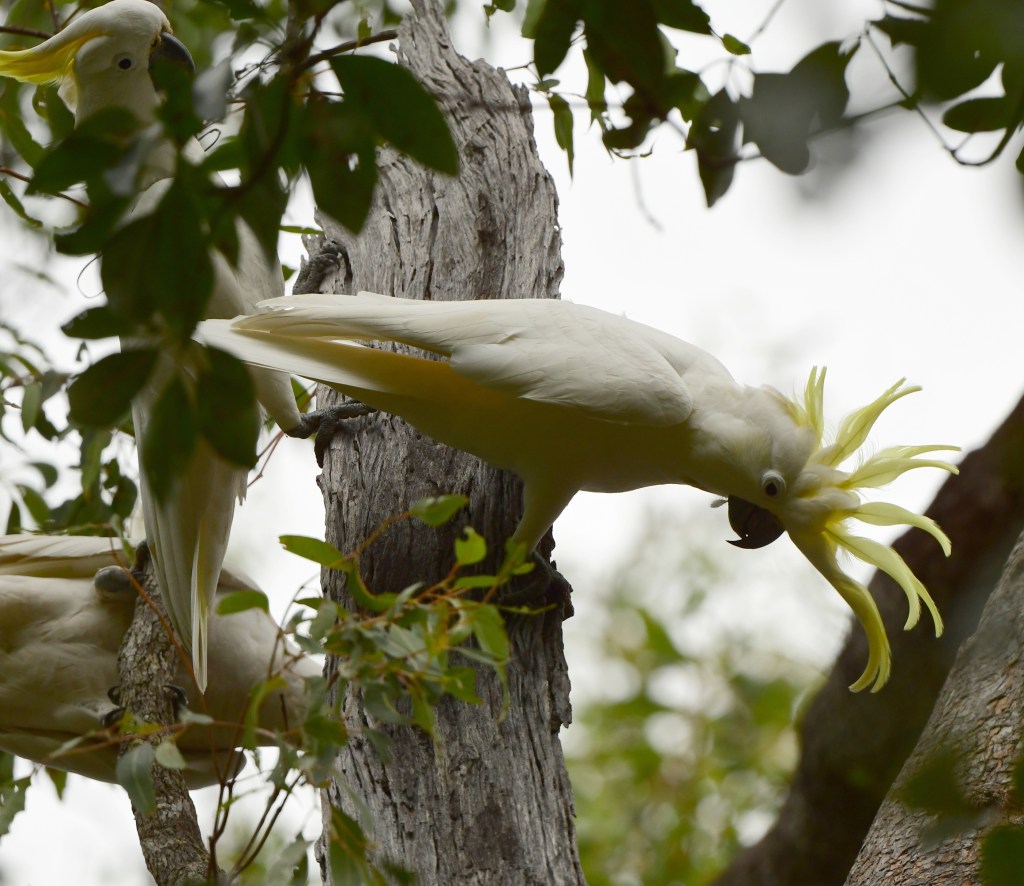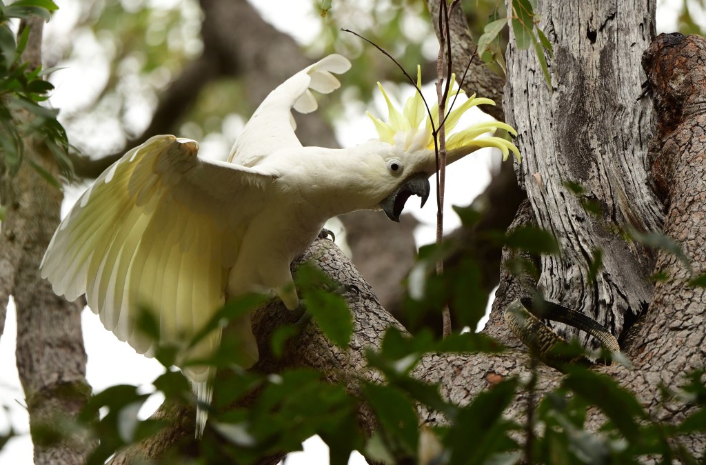 Soon after this, a group of Sulphur-Crested Cockatoos started going crazy in a tree higher up, and peering through the zoom lens showed the tail of a Lace Monitor. They really were distraught, crests flaring and making a huge racket. Monitors are partial to birds’ eggs as part of their diet, so it’s no wonder the cockatoos were trying to drive it off. Unfortunately, they also drove off all the other birds in the vicinity too, so that was about the end of the “explosion of birds” phase of the visit.