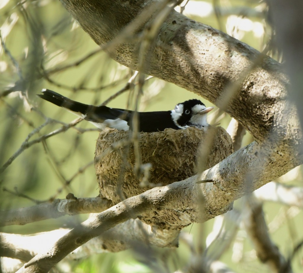 We walked past the bridge that crosses over to Nineteenth Ave, and kept following the path that runs along the south end of the Park, following the creek line. Here was some confusion, as one of us saw a bird nesting and swore it was a Magpie-Lark, while I was adamant the bird in question was a Willie Wagtail. Not two birds you’d normally find hard to tell apart! It turned out there were two different nests in the same tree. The nests themselves were both very sturdy looking, with the Magpie-Lark’s having the “wet mud” look to it (that bird is also apparently called a “mudlark”).