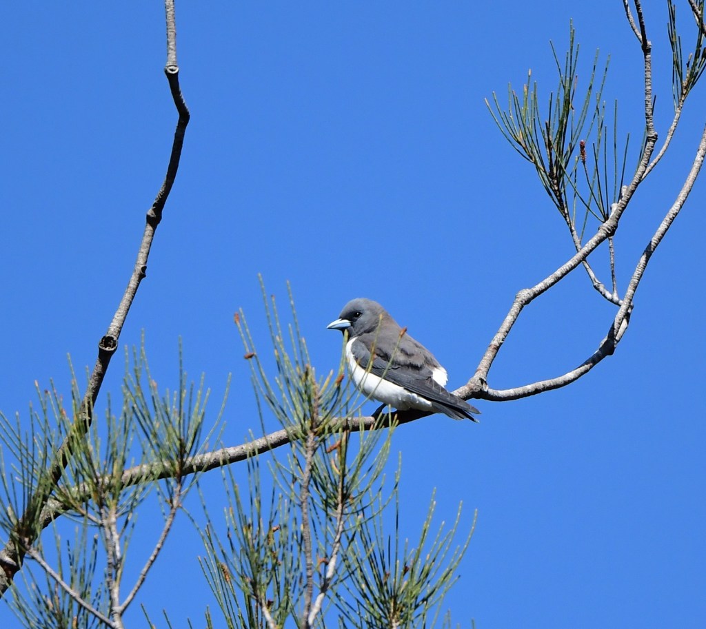 Time to slowly head back, but not before seeing another Olive-Backed Oriole, a Pied Currawong sitting placidly in the sun on a branch, and a cute-as-can-be White-Breasted Woodswallow doing the same.