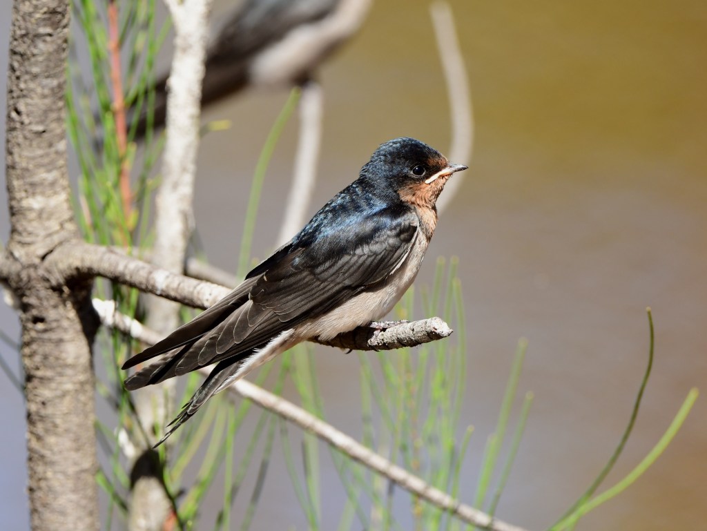 Our route back to the carpark led back across a boardwalk-style bridge that crosses a narrow lagoon, and there were a few water birds on this patch of brown water. More exciting, however, was a group Welcome Swallows on a dead branch sticking out of the water right by the bridge in the bright sunshine. They were swooping out and returning, and we couldn’t help taking zillions of photos of their iridescent feathers shining. Incredible stuff.