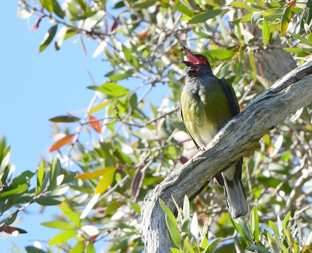 I then chilled out for a while at the very southern end of the park and saw Magpies, Red-Backed Fairywren, Willie Wagtail, female Scarlet Honeyeater, and more Figbirds. Five Blue-Faced Honeyeaters sailed by close above too.