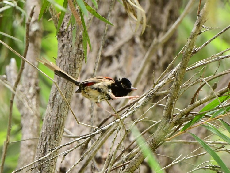 The Double-Barred Finches and Red-Backed Fairywrens were in the same place on the crazy pathway, this time with some Red-Browed Finches for company. As before, the long “tongue” area didn’t offer much; surprisingly, the areas closer to the car park and facilities have more birds.