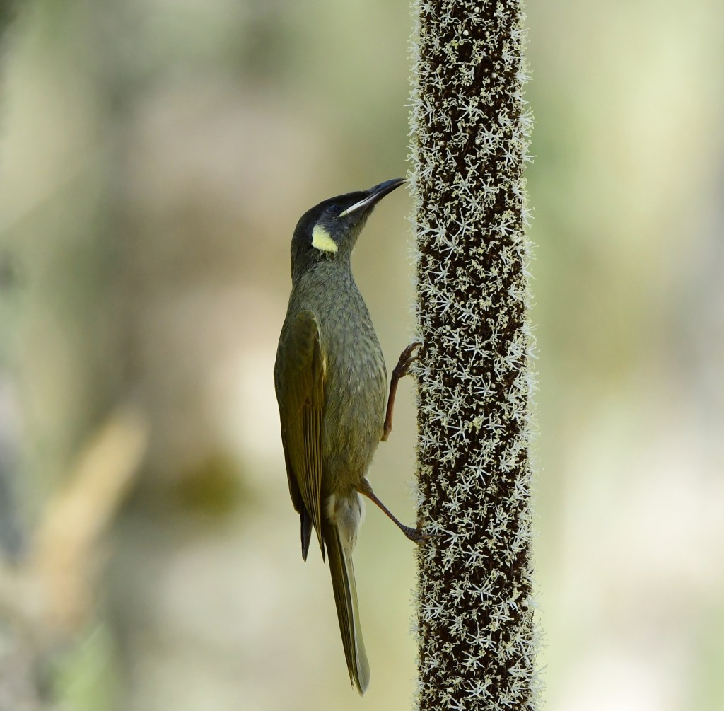 The initial sightings were the first of what would be many Lewin’s Honeyeaters, and of many Bell Miners. The Bell Miners don’t have total dominion here, though there are a few patches along the track network where they do seem to be dominant with their submarine ping calls.