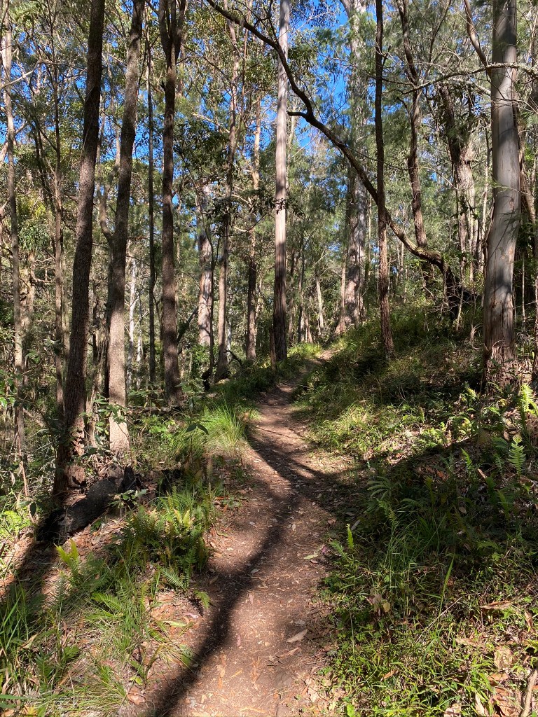 Once we got to the actual “ridge”, we found the grass trees were still in flower, and Silvereye, Eastern Spinebill, Lewin’s and Yellow-Faced Honeyeaters, Rufous and Grey Fantails were all present. The continual sunlight, beautiful bush surrounds and vistas from high up made this a very pleasant place to be.