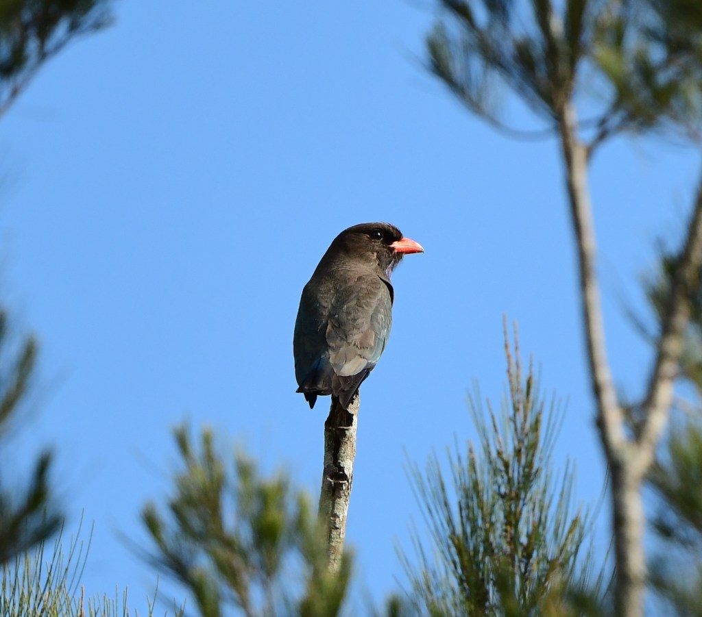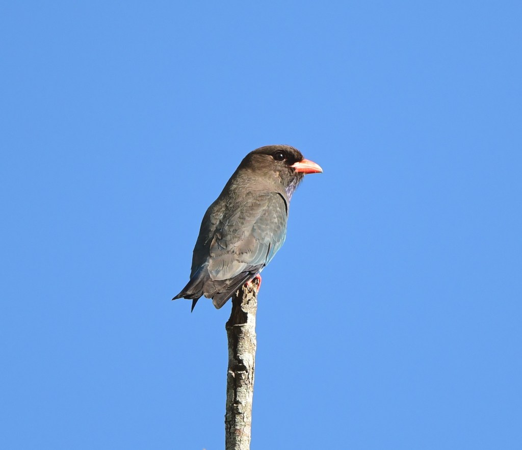 I wasn’t enamoured of the location enough to linger much longer (I also wanted to get to Kumbartcho Sanctuary while it was still early morning), so I made my way back across the bridge and up towards the oval. When I hit the dirt road again, I spotted two Dollarbirds; after a while they flew off showing the circular white patches under their wings. Pretty cool; and then moments later a couple of Sacred Kingfishers were seen similarly perching at the top of bare tree branches. All in all I saw 14 species.