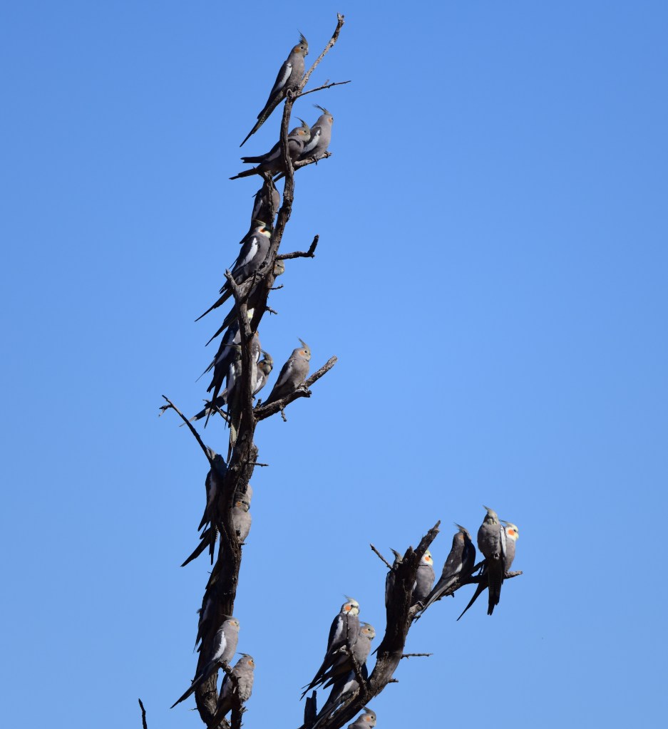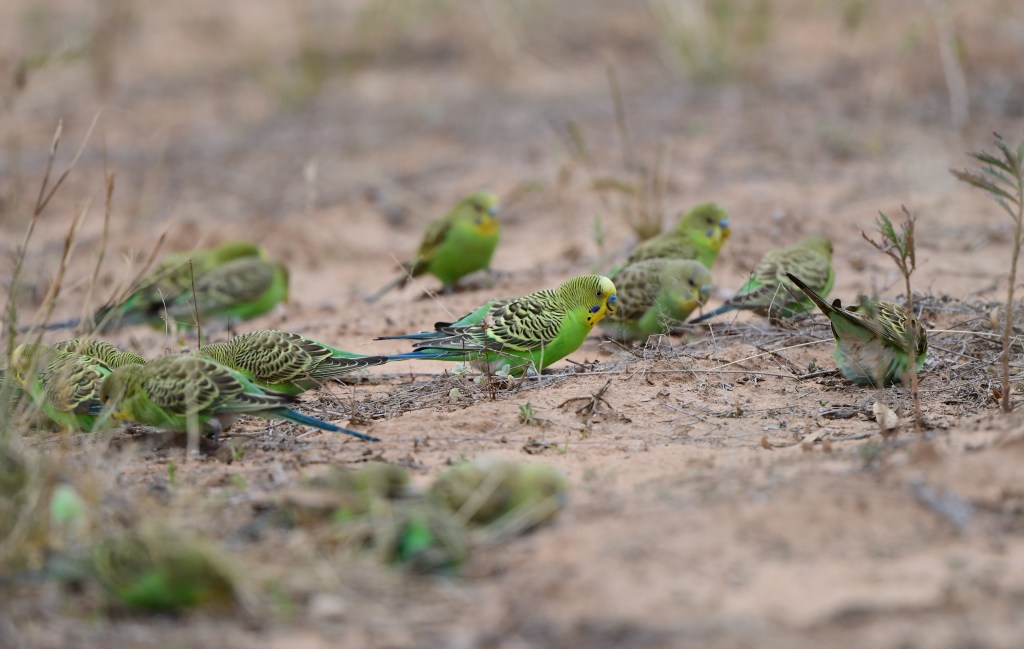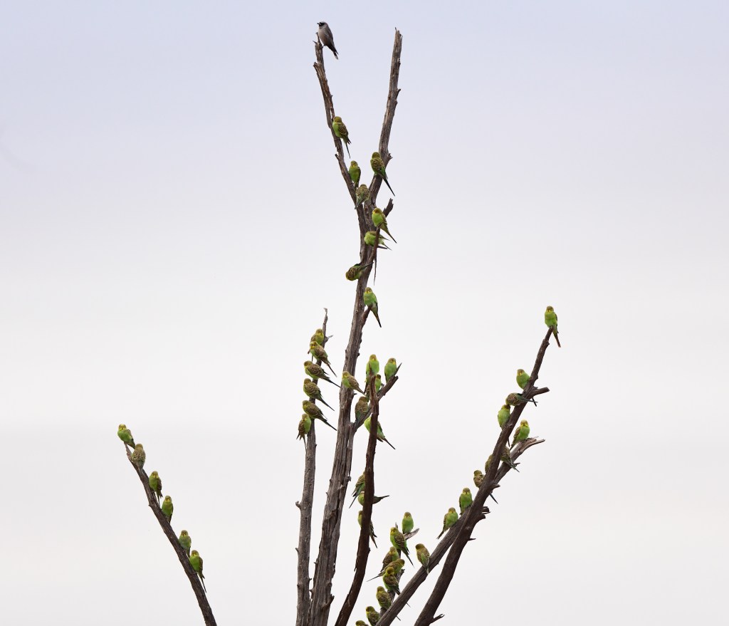 A decent part of that walk seemed to provide endless birds – the first afternoon we saw a huge flock of budgies; in one photo we counted 325 birds.