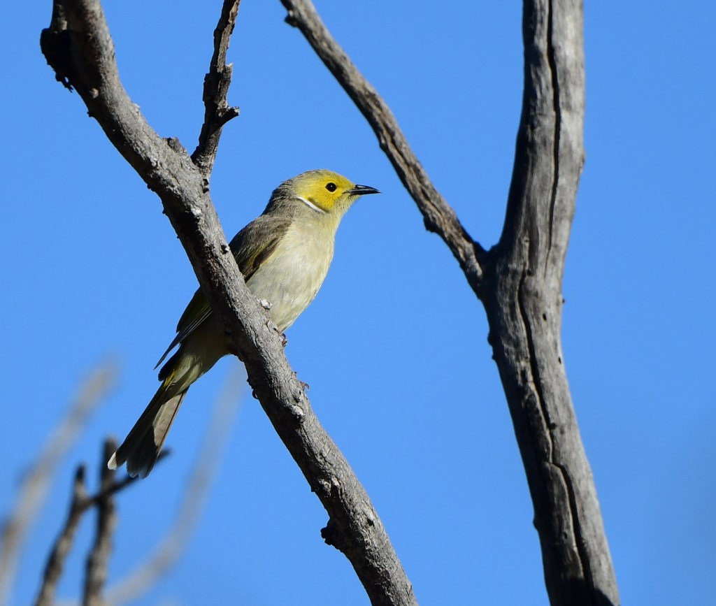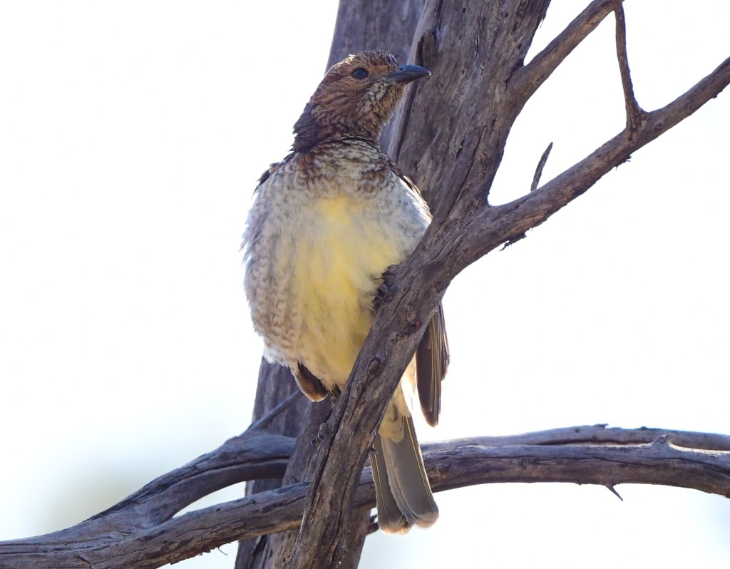 We were quite close to the waterhole, and both the bushline and water held Yellow-Throated Honeyeaters, White-Plumed Honeyeaters, a Darter, a Yellow-Billed Spoonbill, some Australian Wood Ducks, a Ringneck, Spotted Bowerbird, and a few sleepy budgies.