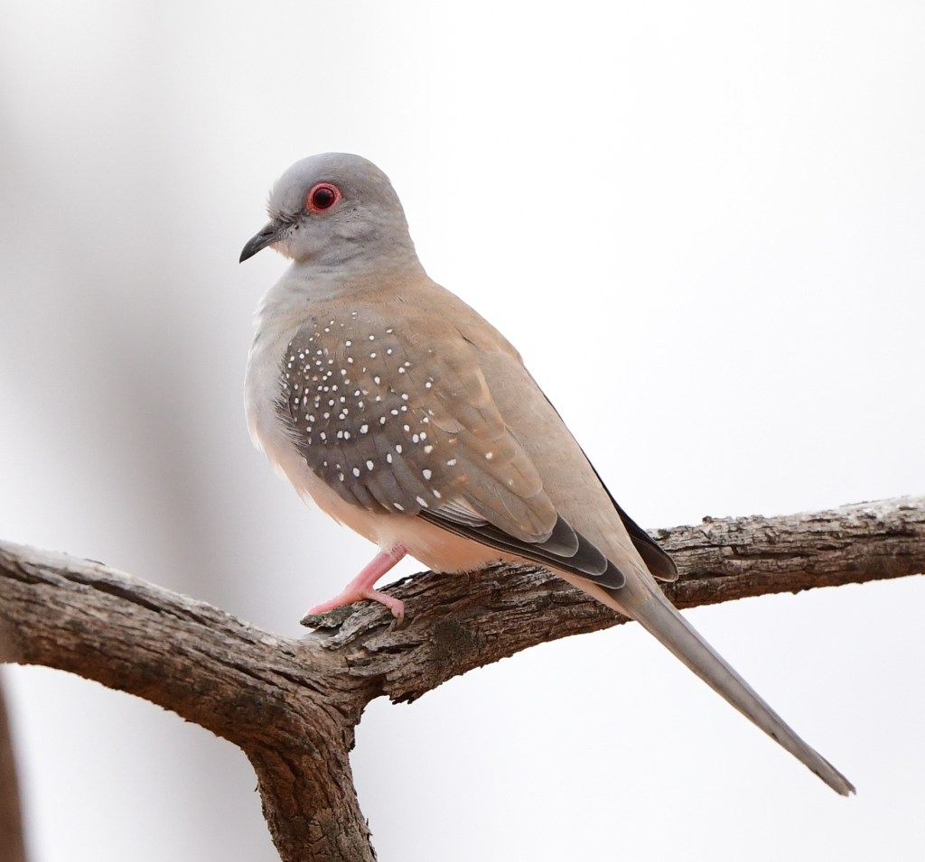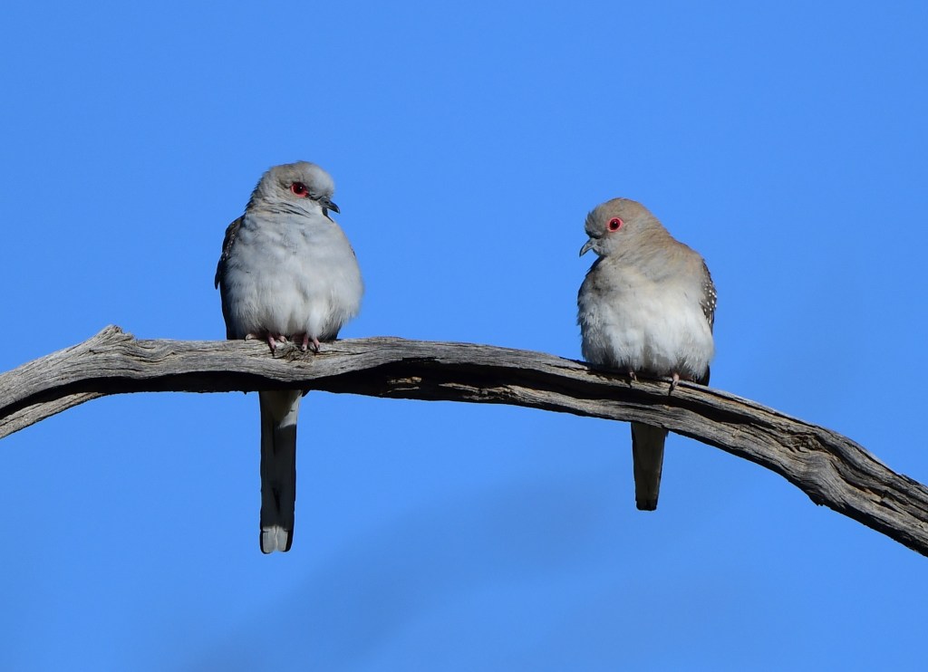 Other birds there were White-Plumed Honeyeaters (of course) and a couple of Diamond Doves (also, we were learning, a ubiquitous bird).