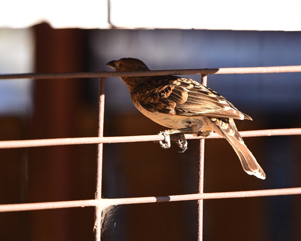 Plenty of great birding is available within and around the campground area. We found Brown Treecreepers were incredibly approachable; one even fell asleep right in front of us near the lagoon. A resident group of Emus trotted through on our last day, and over the three days we were there we had Spotted Bowerbirds, Zebra Finch, Budgies, Masked Lapwings, Willie Wagtails, a Red-Backed Kingfisher and Pink Cockatoos all visiting the camp. It isn’t quite the completely-throw-out-the-rulebook vibe of O’Reilly’s Retreat, but it’s not bad.
