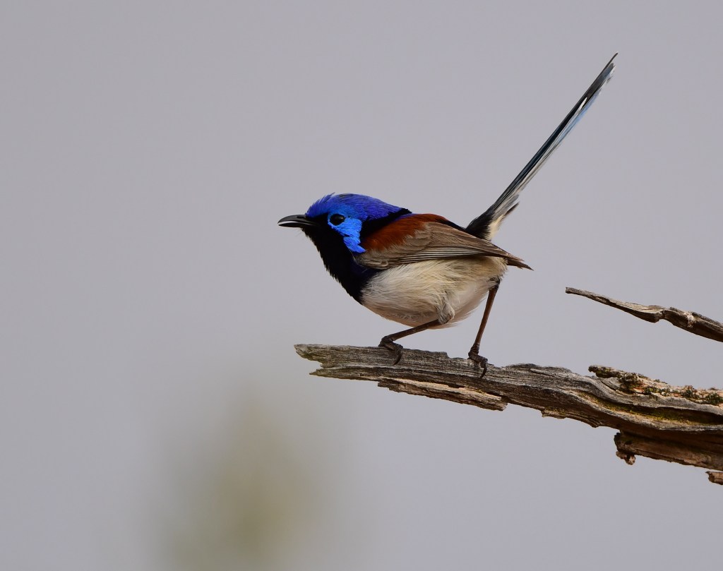 We saw another Spotted Bowerbird and a couple of Spiny-Cheeked Honeyeaters, as well as a Grey Butcherbird, before tracking down the fairywren sound to a group of Splendid Fairywrens. At that point we weren’t actually aware we were even in a region where we could see Splendids, but our first look at the resplendently vivid male bird had us hooked! It really is an incredible bird to behold.