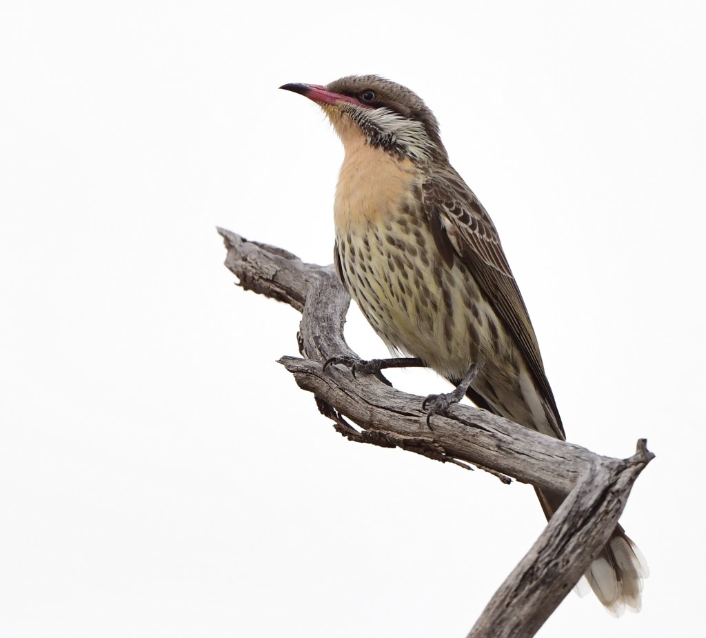 The Mulga Walk started off dry and warm, with no birdlife to see, until a few hundred metres where a sign pronounced “The End”. However, just beyond that sign was a denser stand of trees and we knew from the previous evening’s bird call that Hall’s Babblers might be found in this area, so we explored dutifully.