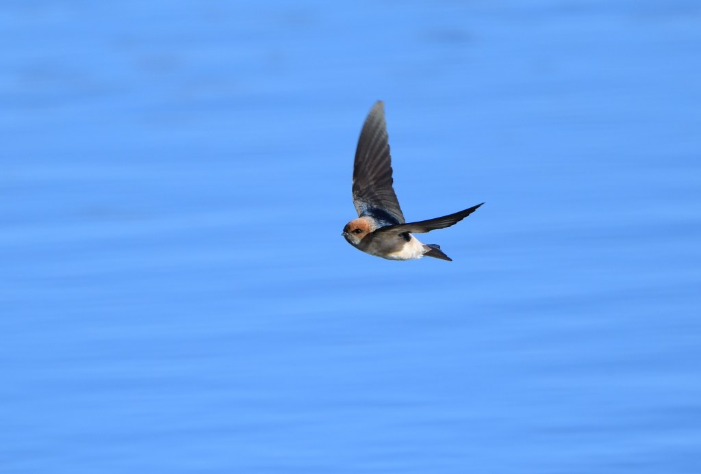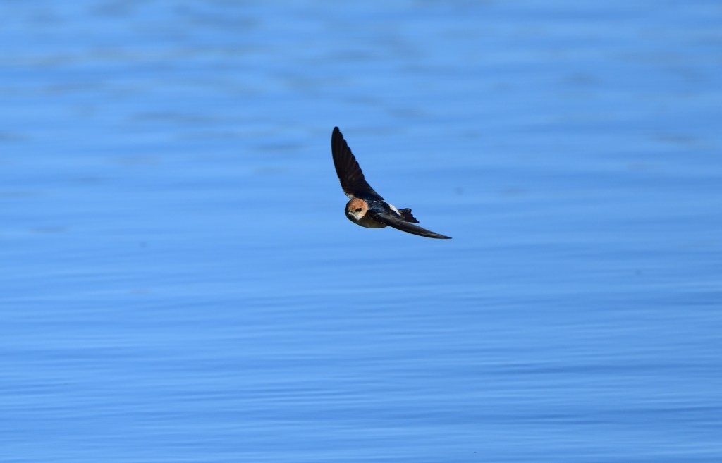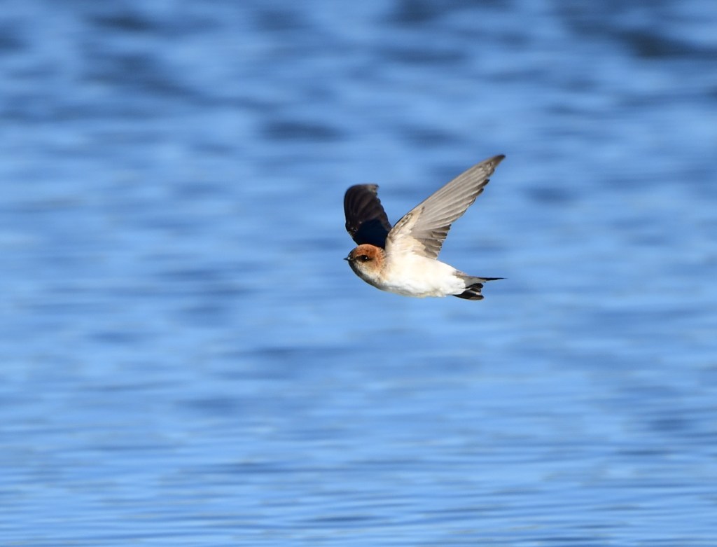 With the ducks sullenly keeping their distance, it seemed like a good time to try and capture photos of some of the many Fairy Martins gliding about above the water. Group Auto-Focus worked well here to track the birds with the relatively smooth background.