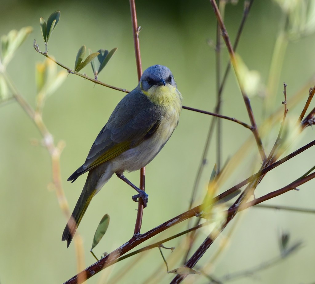 Our first visit had an auspicious start, with Red-Winged Parrots seen even as we were getting out of the car. Walking up the road, we could hear a fair deal of bird noise, and could see movement on the barbed wire fence that surrounds the white water tank (to the right as you walk up) and in the bush that drops off to the left.
