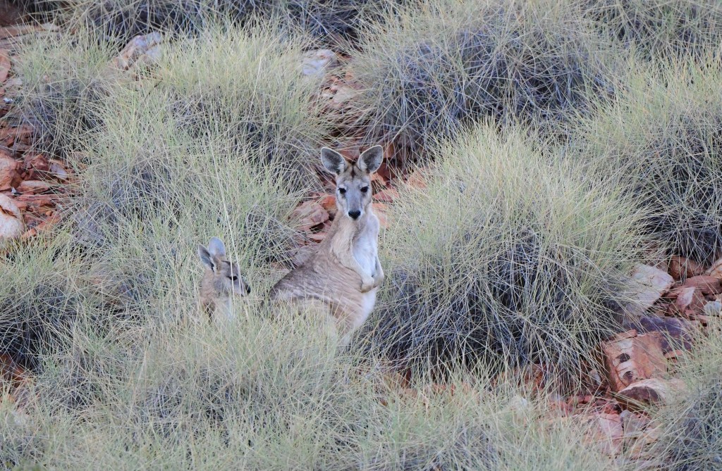 Mind you, there are only 92 photos of Spinifexbird on eBird, and we saw one here while looking for the grasswrens (we saw a total of three Spinifexbirds on our whole trip – here, at Chinaman Creek Dam in Cloncurry, and at Lake Moondarra). The only other birds (apart from the odd far off raptor) to be seen in the spinifex gullies were the ever-present Grey-Headed Honeyeaters. Though, we did see a kangaroo.
