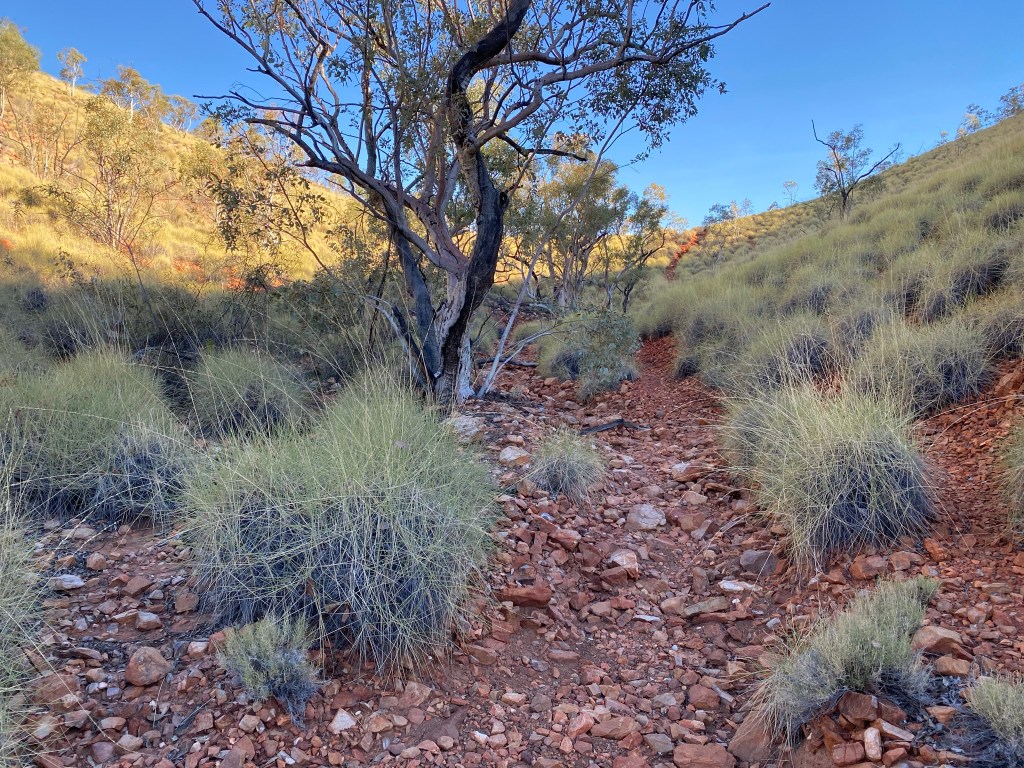 For our second visit, we had done a little more research and it seemed that Kalkadoon Grasswrens were likely to be found further south of the water tanks, in the spinifex-filled gullies. So that is where we headed, scouring the spinifex clumps for a glimpse of this elusive bird, without luck. We walked back along one of the high ridgelines which was pleasant enough.