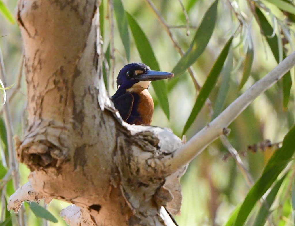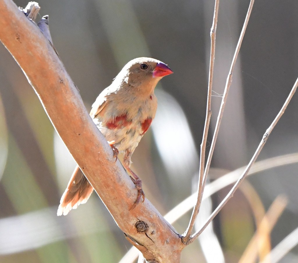A little clamber around the river’s edge found a small group of Grey-Crowned Babblers, then an Azure Kingfisher, which didn’t sit still for long, taking off in a blaze of vivid blue and orange. Then on the ground a male/female pair of Crimson Finches came very close for some water, leading to a couple of amazing photos.