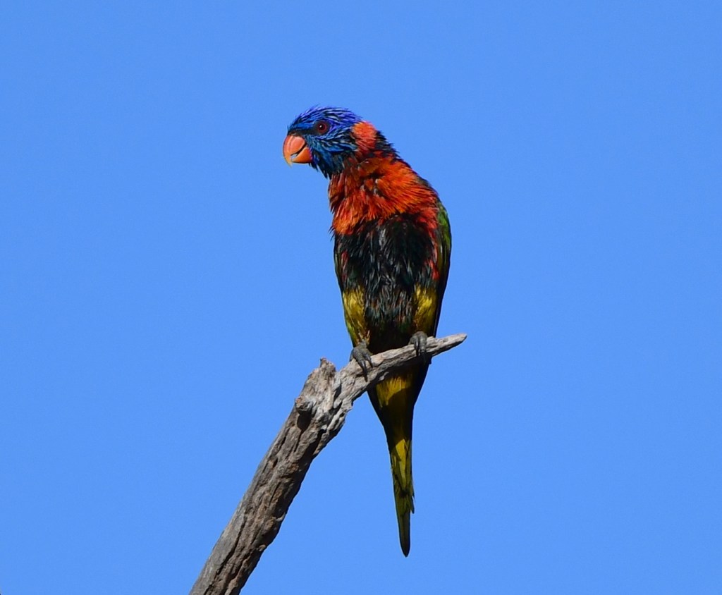 Crimson Finch. Finches (including Long-Tailed and Double-Barred Finches) were playing on the gravel road at Holmes Jungle.The ever-photogenic Crimson Finch, at Holmes Jungle, Darwin.Red-Collared Lorikeet, just like the Rainbow Lorikeets back home, but different… Holmes Jungle, Darwin.Is there any bird in Australia as striking looking as a Rainbow Bee-Eater? Discuss.A sample of the tree line at Holmes Jungle finds one staring at large numbers of Black Kites.