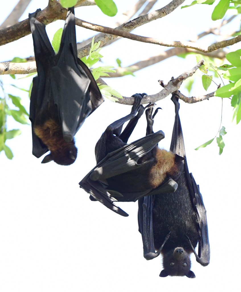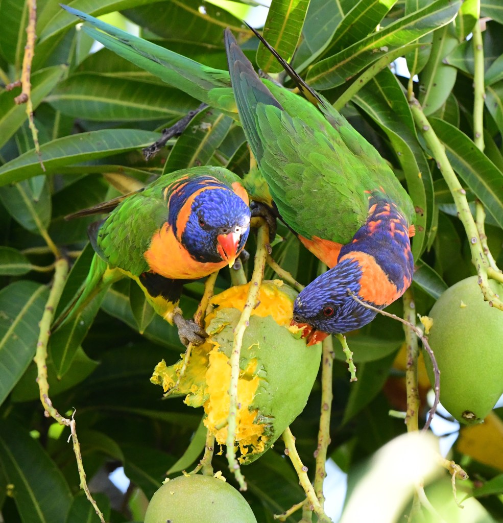 Rufous-Throated Honeyeater, Pine Creek.Also, Pine Creek has bats……LOTS OF BATSRainbow Bee-Eater post-dip, Pine CreekRed-Collared Lorikeets and other birds were partaking of easy mango feeding at Pine Creek“Feed me, I’m hungry!” – Grey-Crowned Babblers at Pine CreekWe hadn’t seen any Magpies or Butcherbirds on our trip at all yet, until coming across this dapper Pied Butcherbird in Pine CreekWhite-Breasted Woodswallow at Pine Creek. This was the only species of Woodswallow we saw on the trip.Female and male Hooded Parrot at Pine CreekThe Hooded Parrot really is a rather cool-looking bird. Pine Creek.