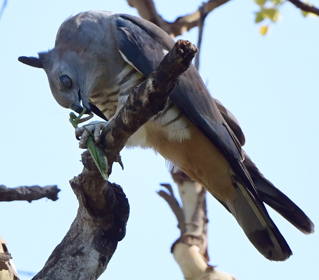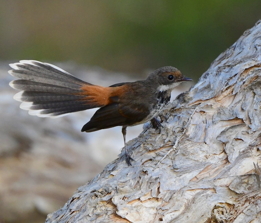 Arafura Fantail, showing its impressive rufous colours (or trying to ward off potential predators, take your pick). Mamukala Wetlands.Bar-Breasted Honeyeater with its complicated mottled chest patterns at Mamukala WetlandsThe Northern Fantail is slightly different from the Grey Fantail you find further south. Mamukala Wetlands.The ever-present and always-stunning Rainbow Bee-Eater. Mamukala Wetlands.A Pheasant Coucal, one of a few sighted at Mamukala WetlandsA Pacific Baza “negotiates” with its prey, at Mary River National Park.The gigantic and somewhat demonic Channel-Billed Cuckoo, Mary River National Park.