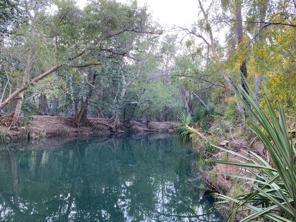 Before taking a dip in the incredibly inviting water, we searched for Purple-Crowned Fairywrens, but only got looks at the females. Still, that was another lifer bird. Good looks at a feeding Varied Lorikeet and a circling Black Kite, as well as some Crimson Finches on the path, all provided some birding interest.