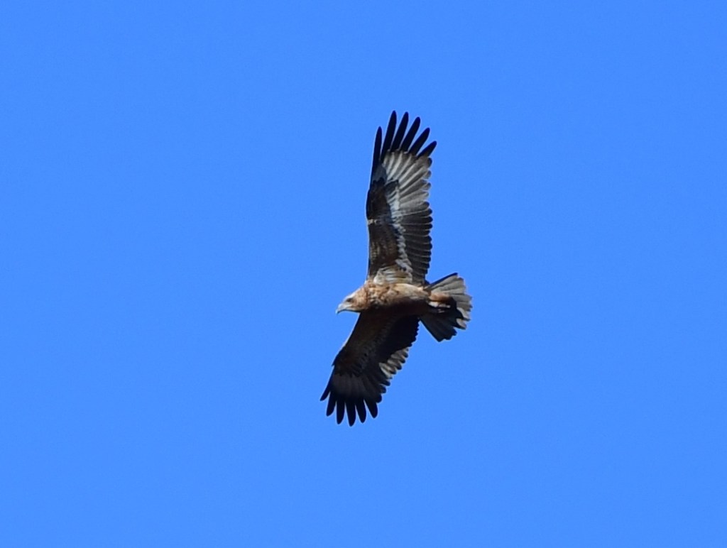 Being the late afternoon, we weren’t expecting to see too much, but were lucky enough to spot an unusual raptor circling in the distance which turned out to be a Black-Breasted Buzzard, a bird we had been on the lookout for for a while (we’d been scrupulously examining raptors looking for the characteristic short tail of the Black-Breasted Buzzard). That was pretty neat, though the buzzard was quite far away. Soon after a Black Kite flew by (not at all unusual), and a little later a mighty White-Bellied Sea-Eagle cruised past with some sort of half-dismembered rodent in its claws. Classic.