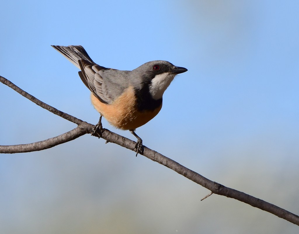 The next morning we put aside an hour or so to walk the trail again, this time covering just the dry area away from the creek. We managed a longer encounter with a Black-Chinned Honeyeater, and saw a male Rufous Whistler too.