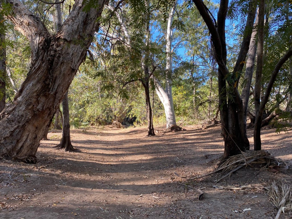We stayed one night only, and just as well too – in the “grove” section by the creek, it appears rather pleasant and incredibly shady with many large overhanging trees… which come alive with high-decibel fruit bat noise at night. Then twenty minutes before sunrise, the cacophony shuts off like someone threw a switch, and the bird chorus starts up.