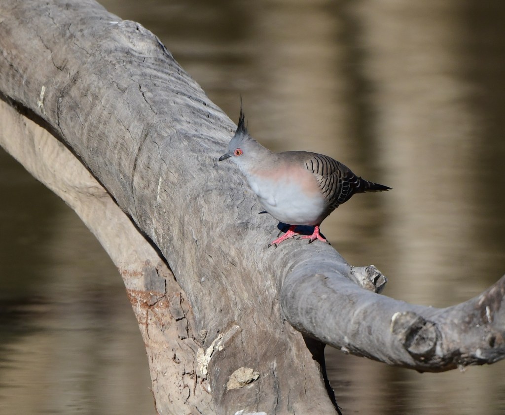 A couple of Magpie-Larks were also obedient photographic subjects, and when we approached the Rifle Range Road bridge on the south side, we also found more familiar species: some Welcome Swallows swooping over the water, and a Crested Pigeon pretending to be a Pied Cormorant or something.