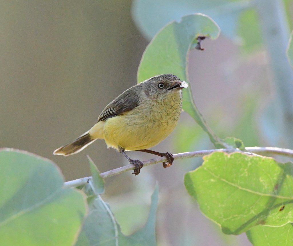 The trail here follows the creek line and is quite pleasant, and about half way along its length was where we found the most birds, with a few honeyeaters – Lewin’s, White-Eared and White-Naped – featuring along with five Grey Fantails counted, and a few birds heard like Kookaburras and the distinctive descending call of White-Throated Gerygone. However, close photographic encounters were best by far with some Buff-Rumped Thornbills.