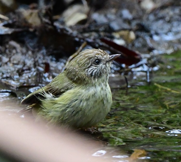 The birding kicked up a notch after that, with a number of good sightings around the water. White-Naped Honeyeaters and more Striated Thornbills were taking a dip in a patch of creek just near the Ward’s Canyon turnoff.