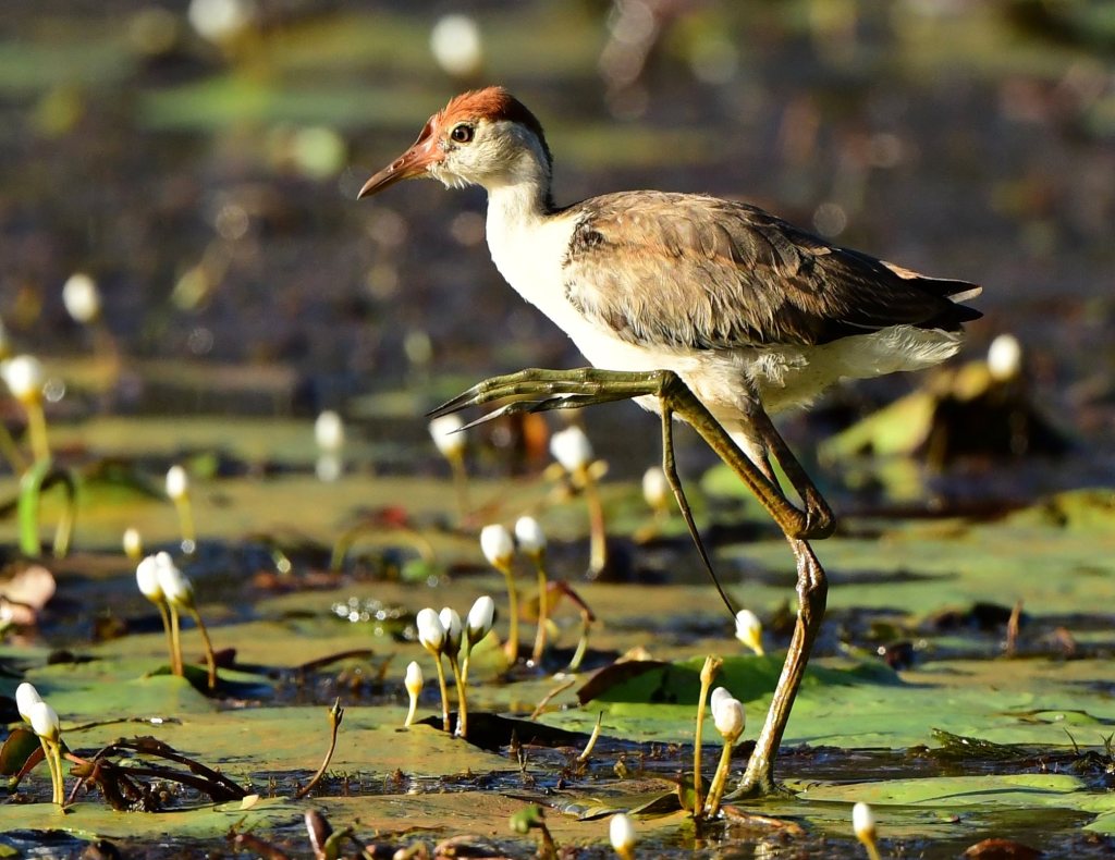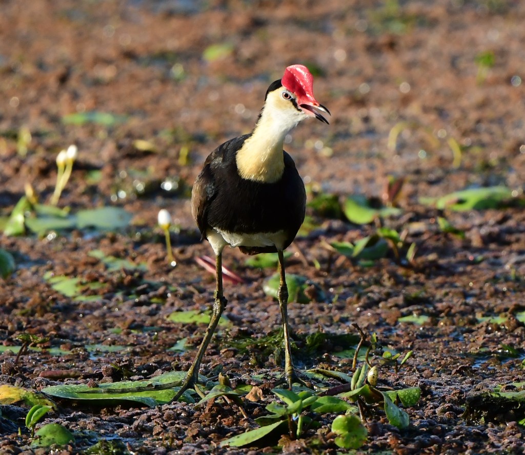 There are a few gaps in the edging reeds, and by crouching and waiting for a while you can get very good shots of Comb-Crested Jacana when one comes close enough. In fact with such patience the causeway lets you get close to many of the birds; it is reminiscent of the pathway that divides the two main ponds at Sherwood Arboretum in that way.