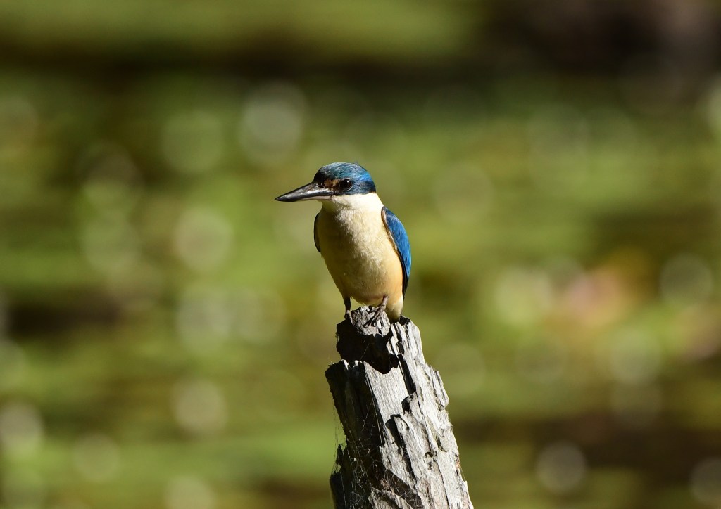 Keep a look out for baby birds in these ponds, they can be fun to photograph too. Also, on the dead branches I’ve often found kingfishers – Sacred and more rarely, Forest Kingfishers.