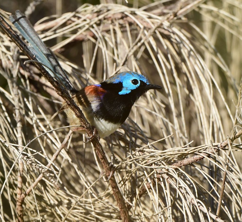 The gravel pathway that goes straight on for quite a way underneath the powerlines is worth a walk – I’ve found Chestnut-Breasted Mannikin in the long dry grasses here a few times; they sometimes fly down to the path and forage along its edge too. Red-Backed Fairywrens and Tawny Grassbirds also frequent here.