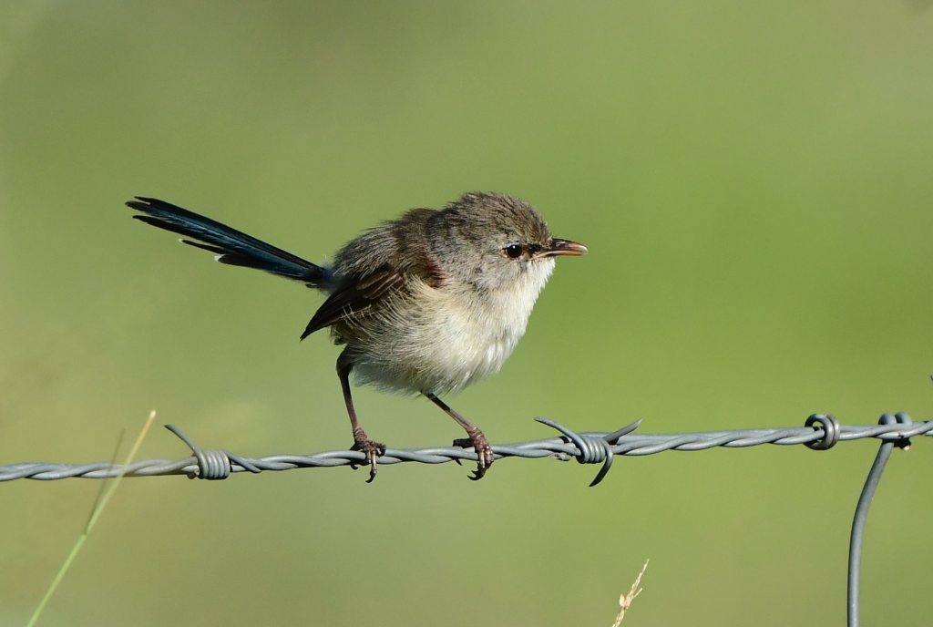 Superb Fairywren sat obediently on the fence, while a Yellow-Rumped Thornbill made a very quick fence stop as well – a good thing too, because there may well have been many more of them in the grass beyond the fence, but it was difficult to spot them there.