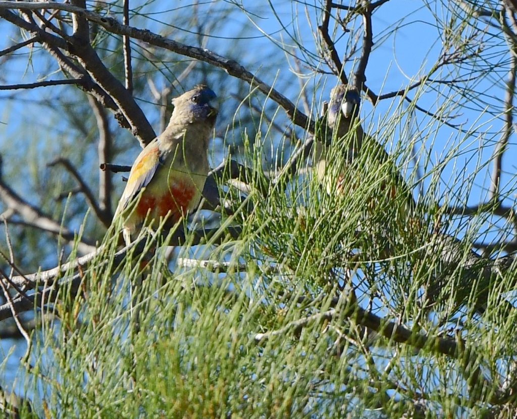 Red-Rumped Parrots were also present, and one of the pair of Bluebonnets was kind enough to land on the barbed wire fence for an eye-level photo opp (thanks, Bluebonnet!) The bright splashes of colour on this otherwise grey-ish bird are really quite something.