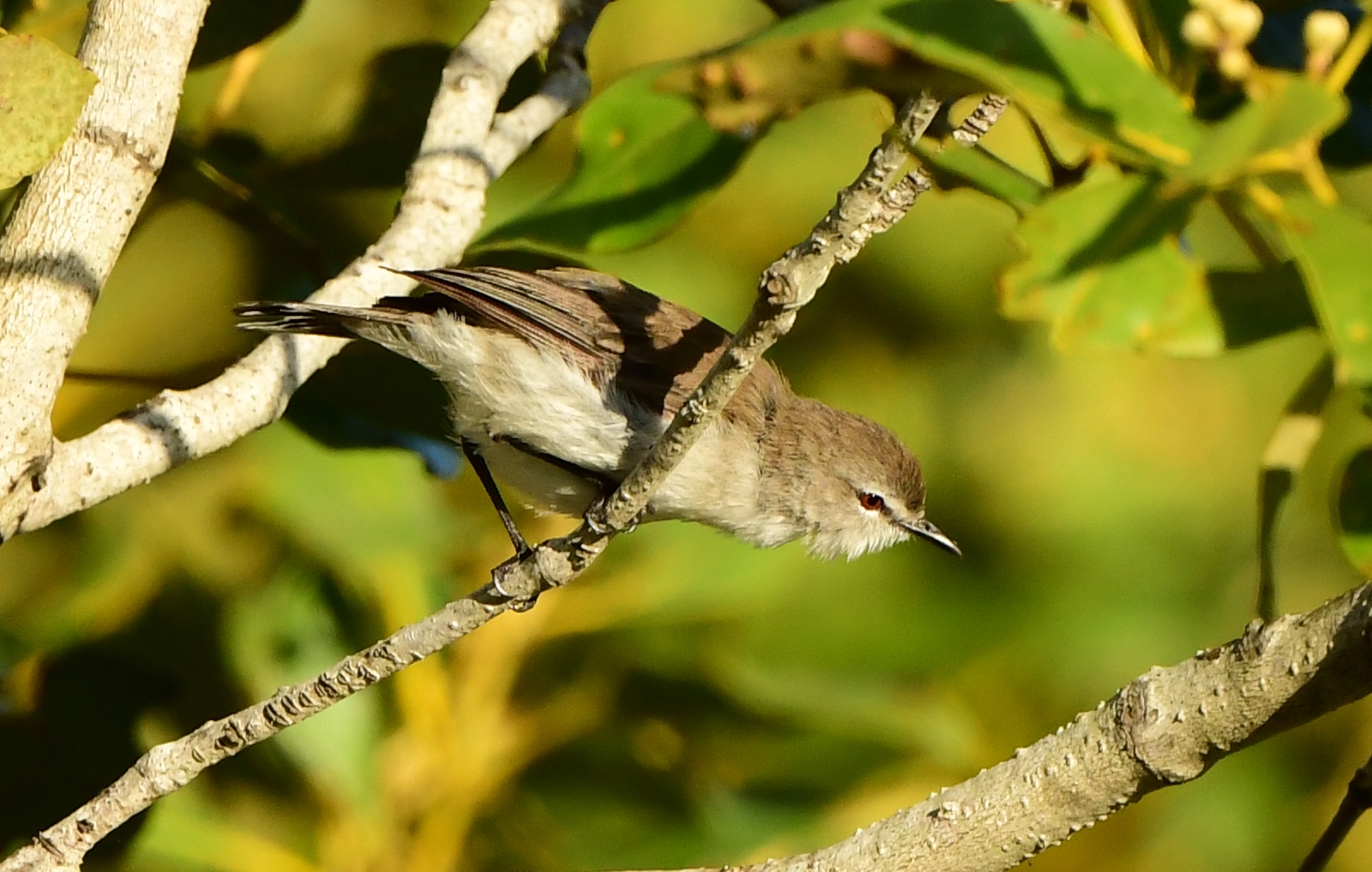 Rounding the corner and making my way up the western edge of the wetlands, the highway traffic noise started to become annoying, but there were plenty of birds at least: Superb Fairywren, Willie Wagtail, and a close encounter with a female Leaden Flycatcher, while the Gerygones were still present too. This part of the loop is gravel and there are very few people or cyclists – they’re all on the paved path that runs along the eastern side of the wetlands.