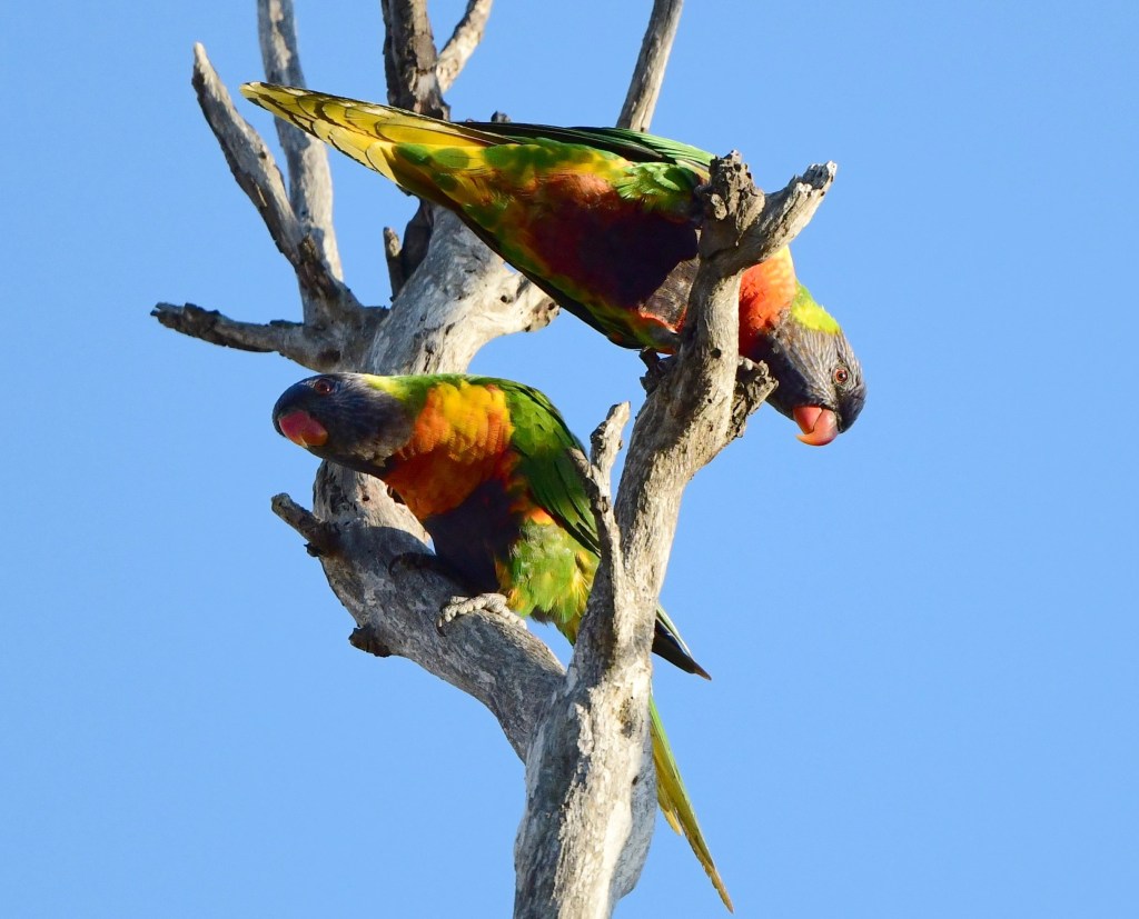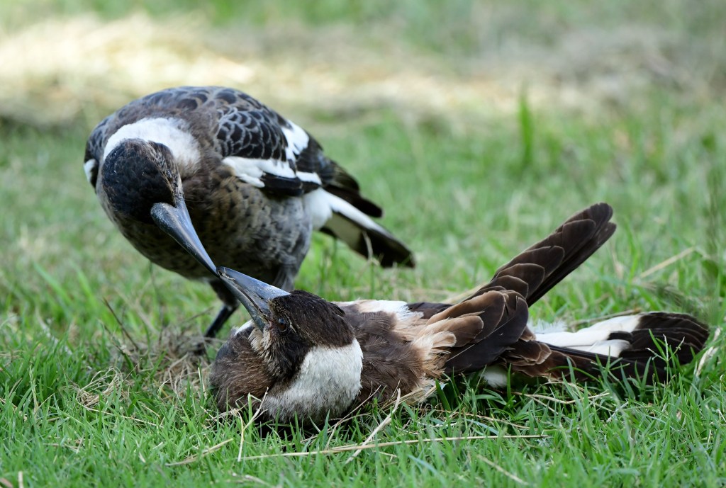 Within the park there was a Little Friarbird, probably in the most urban of environments I’ve seen this bird, and soon after I came across a pair of magpies, not quite in adult colours, which were behaving very strangely. One was lying on the ground and the other was attending to it, fussing around and prodding it in what I took to be a non-aggressive manner. My first thought was that the magpie on the ground was injured; neither of them moved off when I approached. When I moved away again, the lying-down magpie got up and walked off. Most peculiar.
