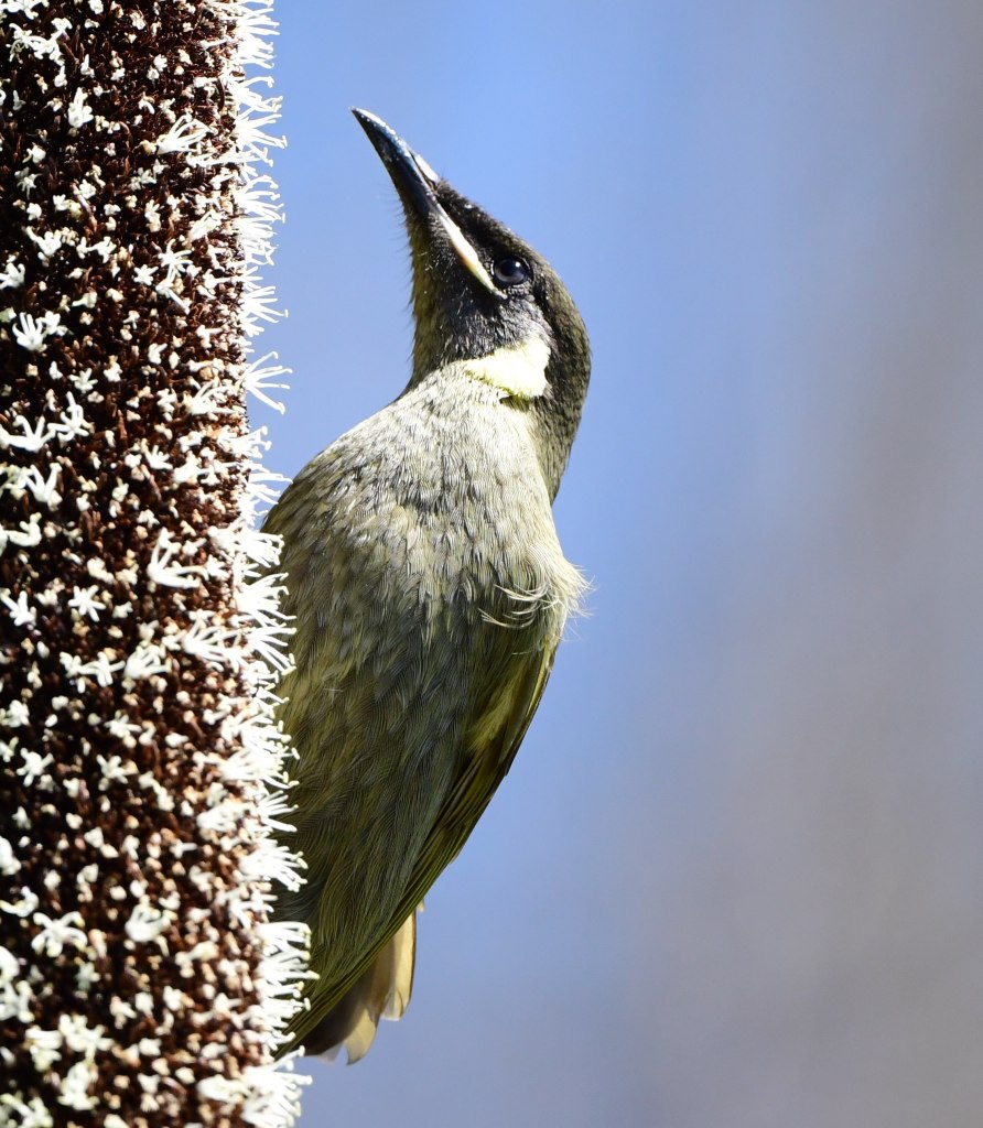 Some of the grass trees were still flowering from winter but the only bird that seemed to be interested in the nectar on offer was a Lewin’s Honeyeater, so I spent quite some time watching it and trying to adjust for the different angles of sun on the bird as I was taking photographs. Full sun on feathers can cause glare issues, but it’s unbeatable for picking out fine feather detail, which is very possible when you’re able to get quite close to a bird. Also, I love Lewin’s Honeyeaters 🙂